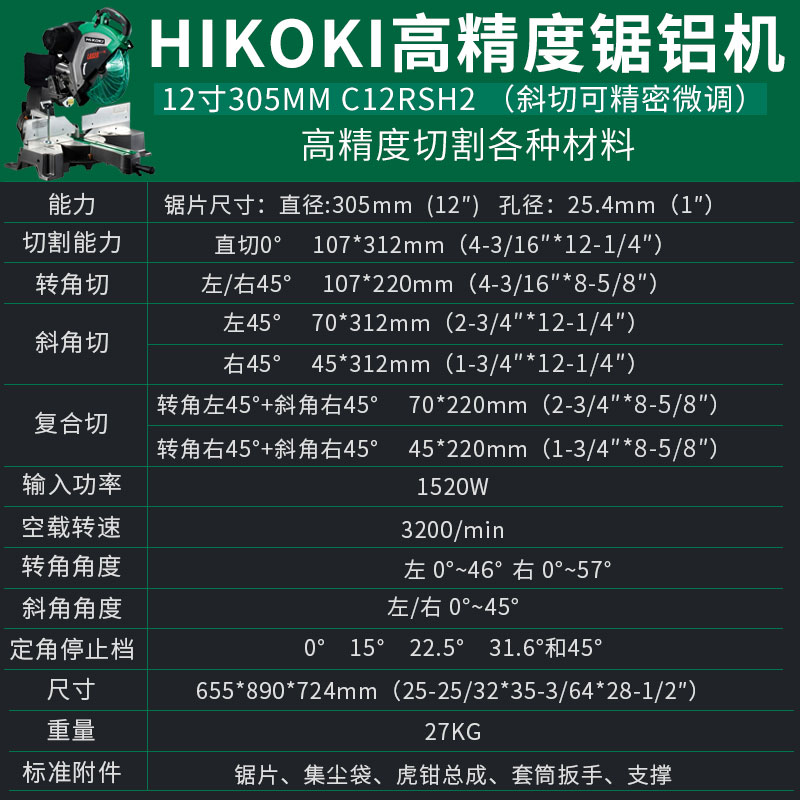 HIKOKI high precision saw aluminum machine 10 12 inch laser positioning aluminum alloy wood cutting machine 45 degree mitre saw