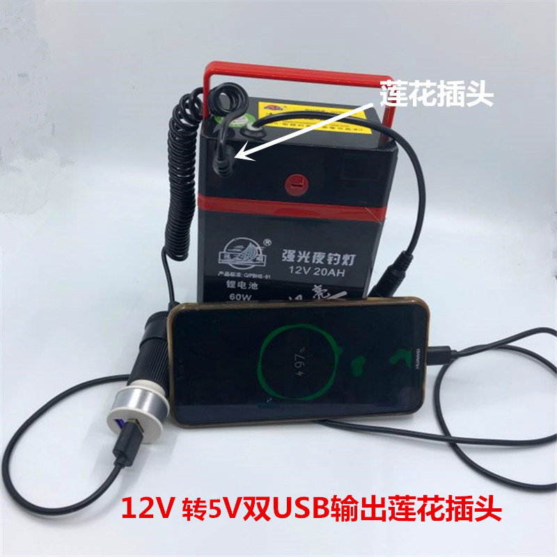 Hon Shundao 12V turn 5V Dual USB Output 12V Battery Fishing Light Night Fishing Light Special Transfer Lotus plug-Taobao