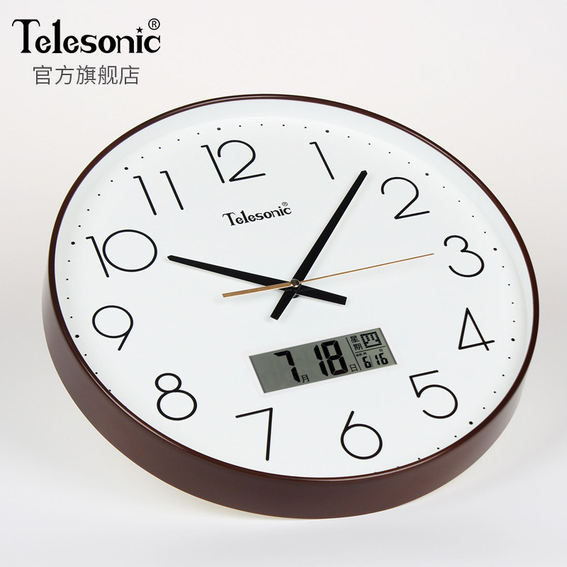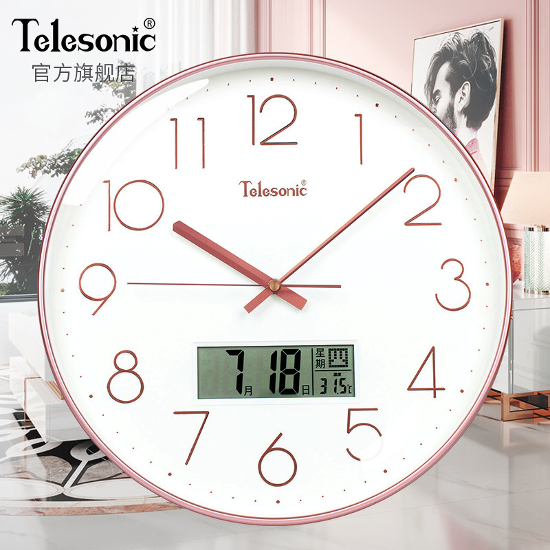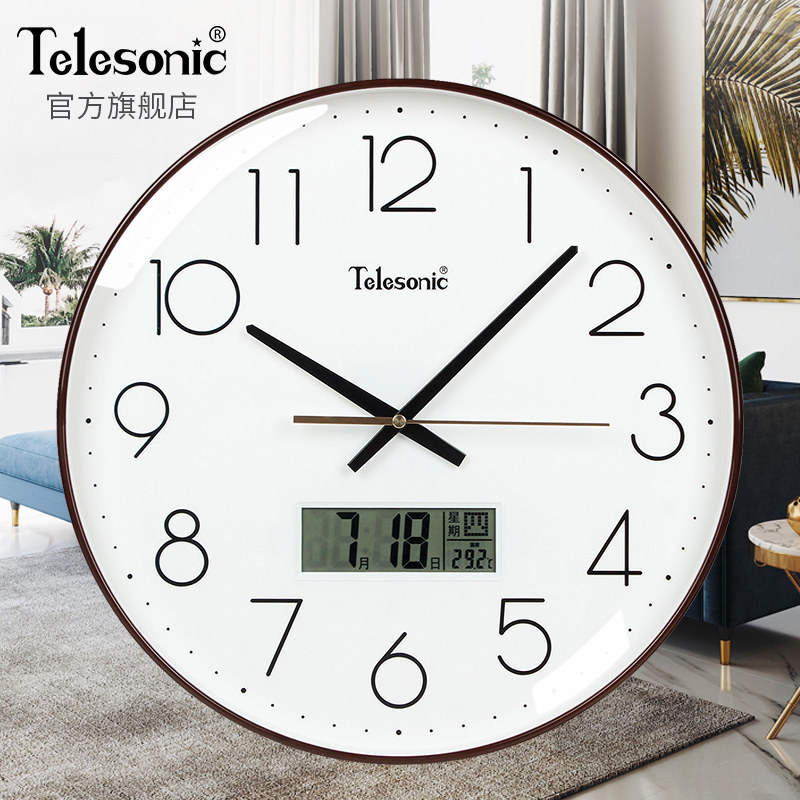 TELESONIC Uranus perpetual calendar electronic wall clock Simple living room silent quartz clock Calendar clock wall watch