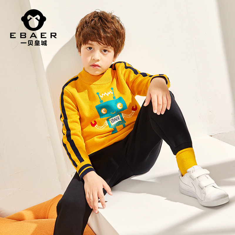 Yibei Imperial City boys pullover sweater 2020 autumn and winter new children's printing double layer thickened sweater top tide