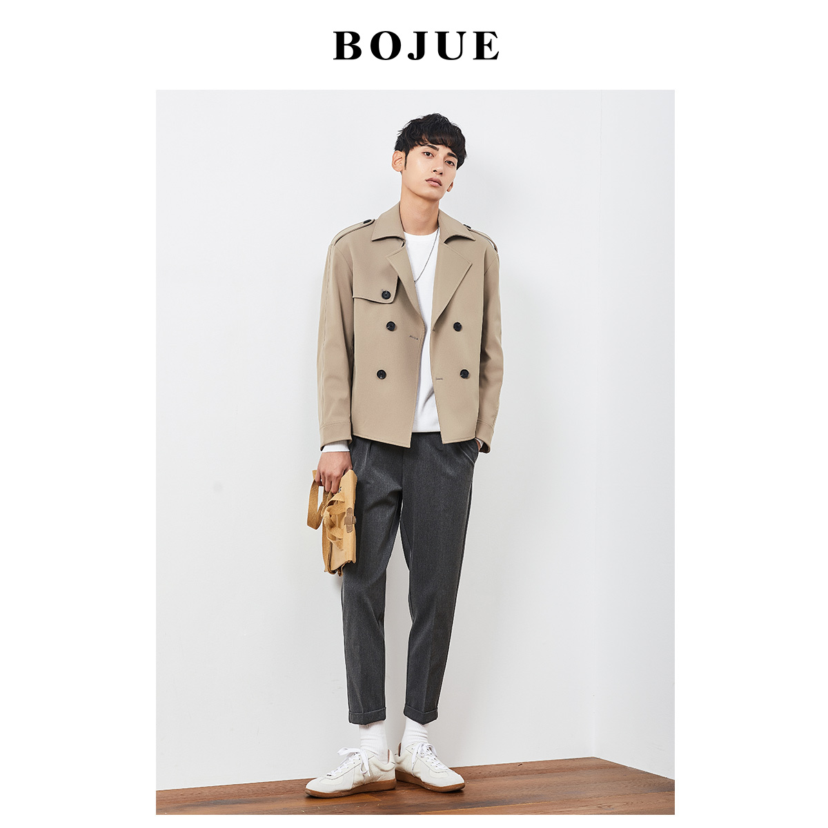 Double-breasted British style jacket Spring and Autumn new men's thin Korean version handsome trend short jacket men's clothing