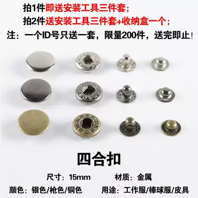 Four-in metal button button button diameter 15mm copper jacket baseball uniform work clothes leather goods button
