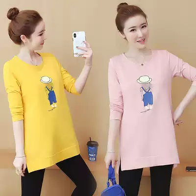 Pregnant women's autumn coat 2021 New Korean version of long cotton loose long sleeve T-shirt wear wild base shirt