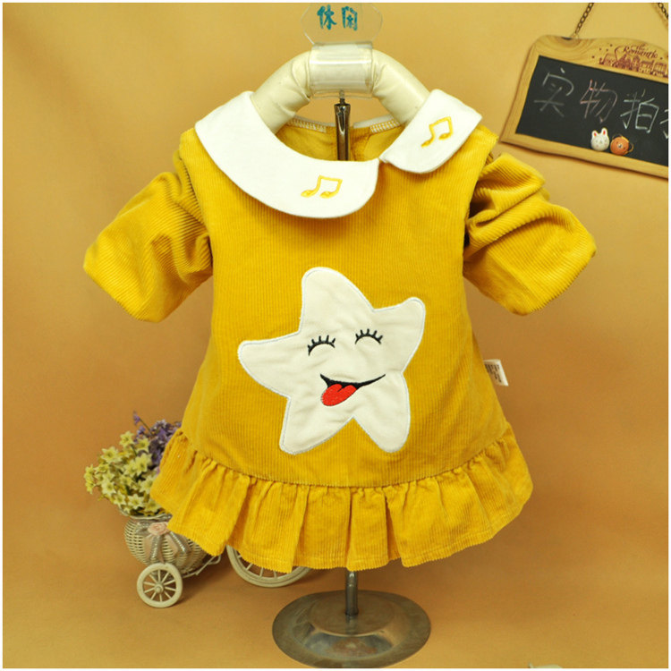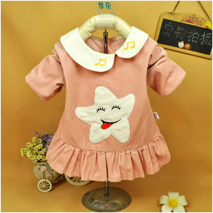 Girls baby gown waterproof spring, autumn and winter new wick thick corduroy eating clothes long-sleeved large size children's reverse dressing