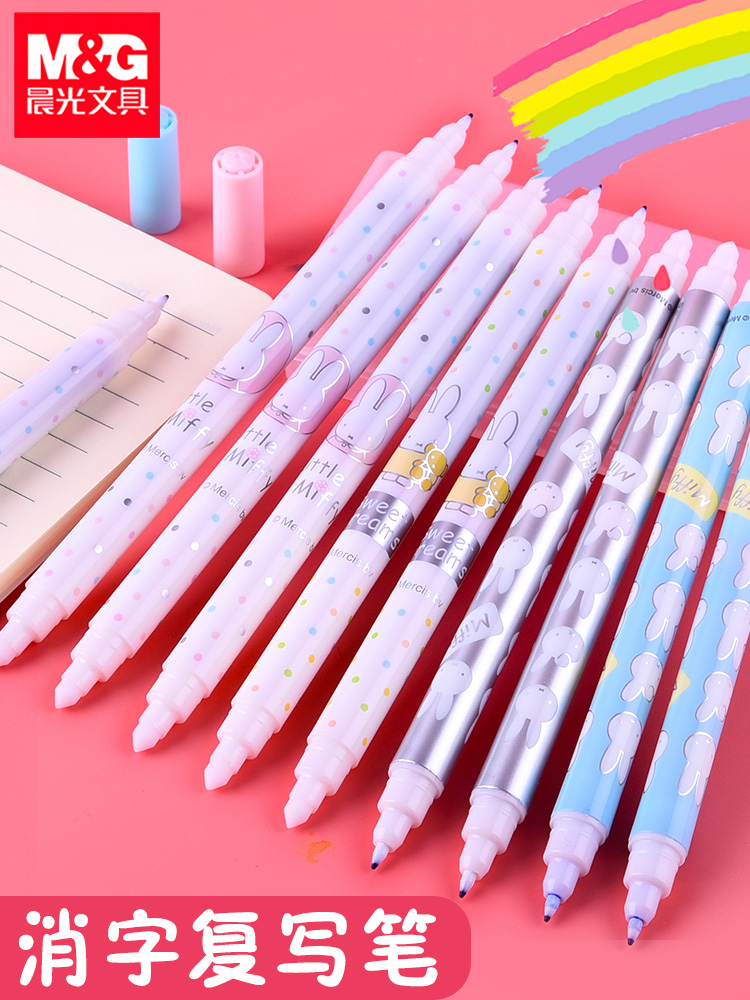 Morning light writing pen rewritten pen Lord of the pen Primary school students with a raccoon pen Double head mages pure blue and cute wordless rewritten pen One can wipe a large capacity wholesale with no-mark erasable pen