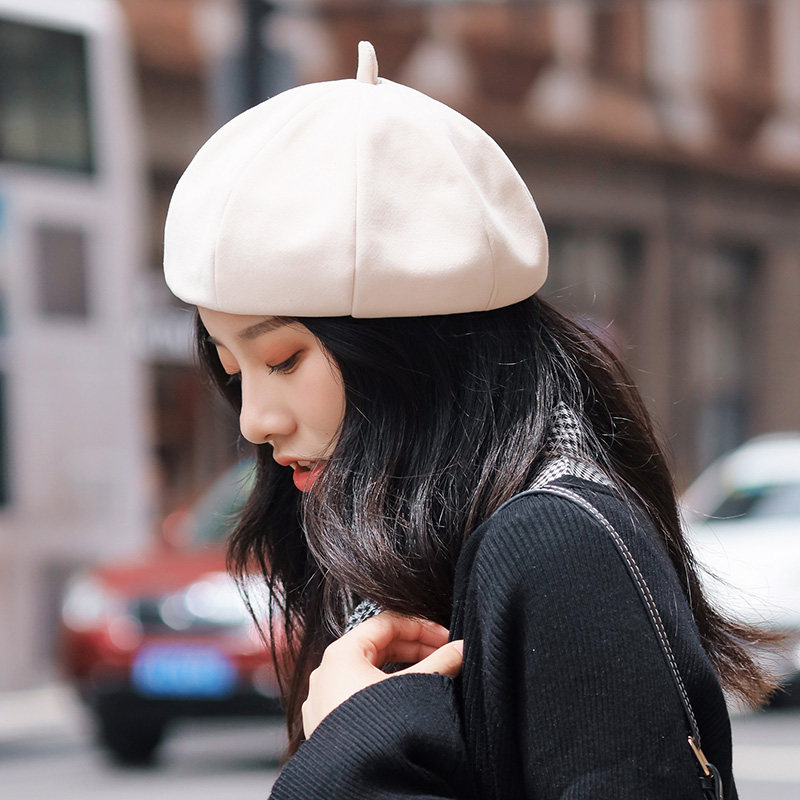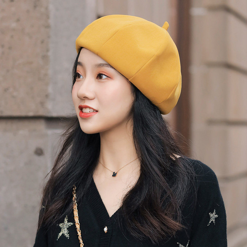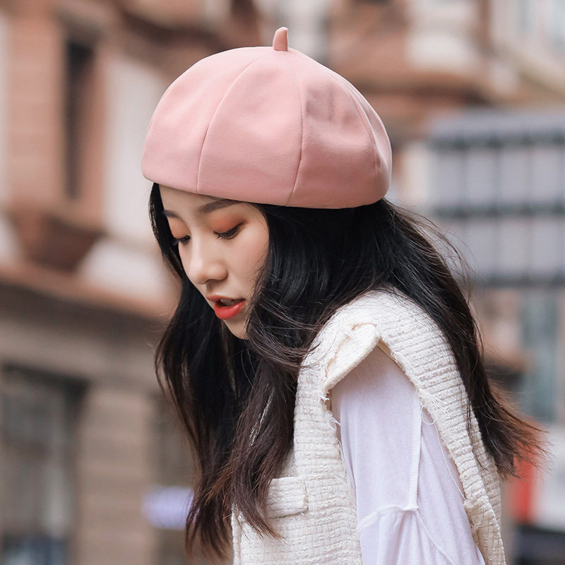 Berets Hood Woman Autumn Winter New Korean Version Tide Retro Inron Pumpkin Cap 100 Lap Sweet Love Day Ensemble Newsday Children's Beret