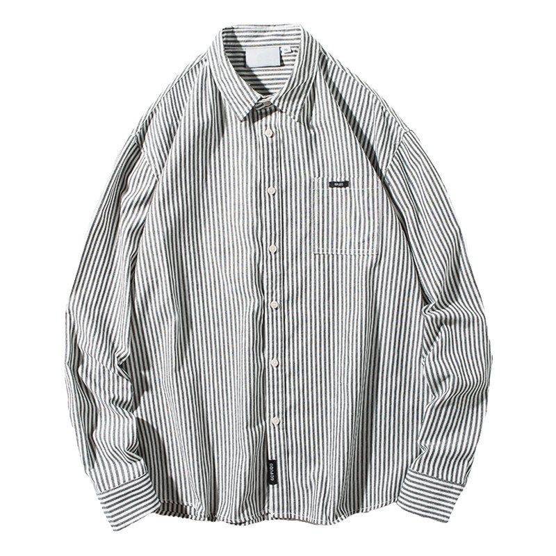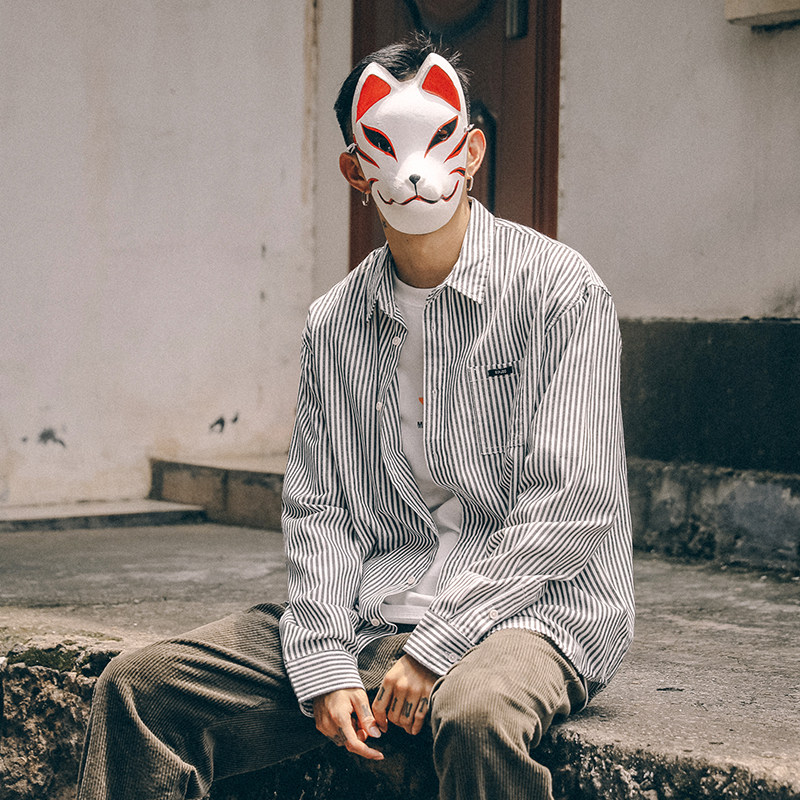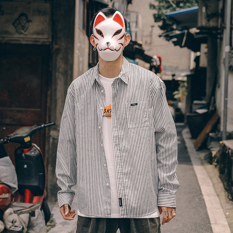 The whole village Japanese Harajuku style vertical striped shirt men's spring long-sleeved loose tide brand shirt casual thin section all-match