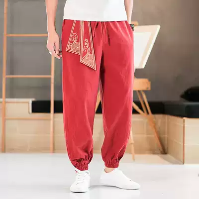 Autumn cotton and linen pants men's Chinese style bunches Leggings loose Haren pants youth ethnic style pants