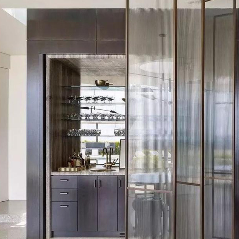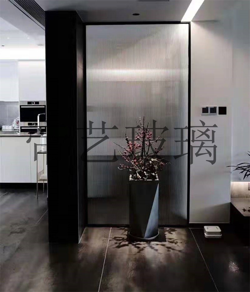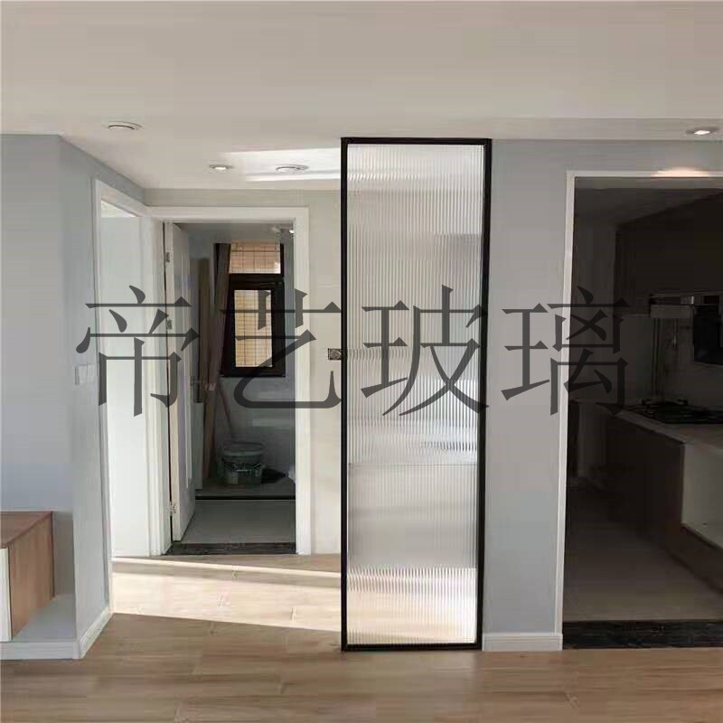 Striped glass partition corrugated wave office narrow frame entryway bathroom craft glass screen customization