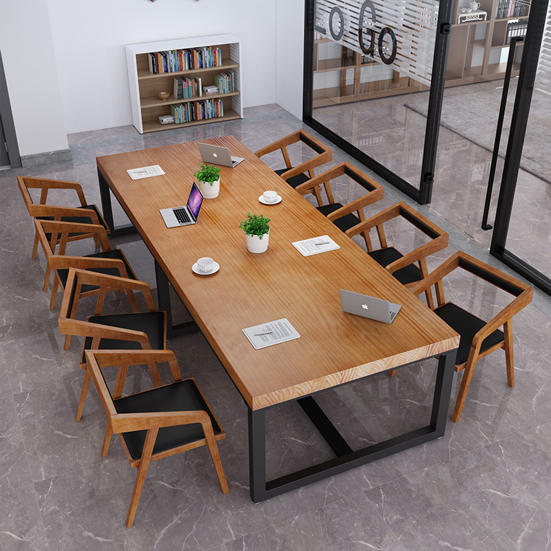 Solid wood conference table long table simple modern desk industrial style training table large and small negotiation table and chair combination