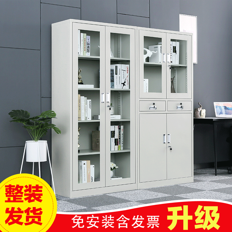 Two-bucket iron door cabinet in 2-bucket glass cabinet in fluorescent green rose red large instrumental cabinet, pair of open iron door cabinet (4 partition boards) Double-section filing cabinet for open glass cabinet Credential cabinet (7 pieces of partition)