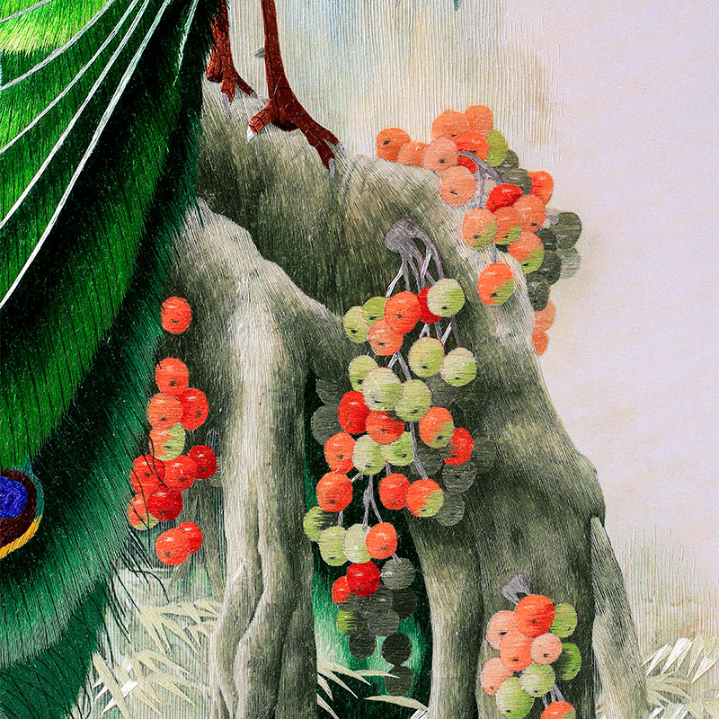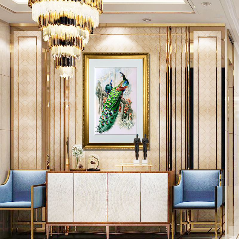 Jin Wu Xiaojiao pure hand-made embroidery painting of Souzhou embroidery finished product hanging painting of masonry bedroom silk decoration painting peacock depends