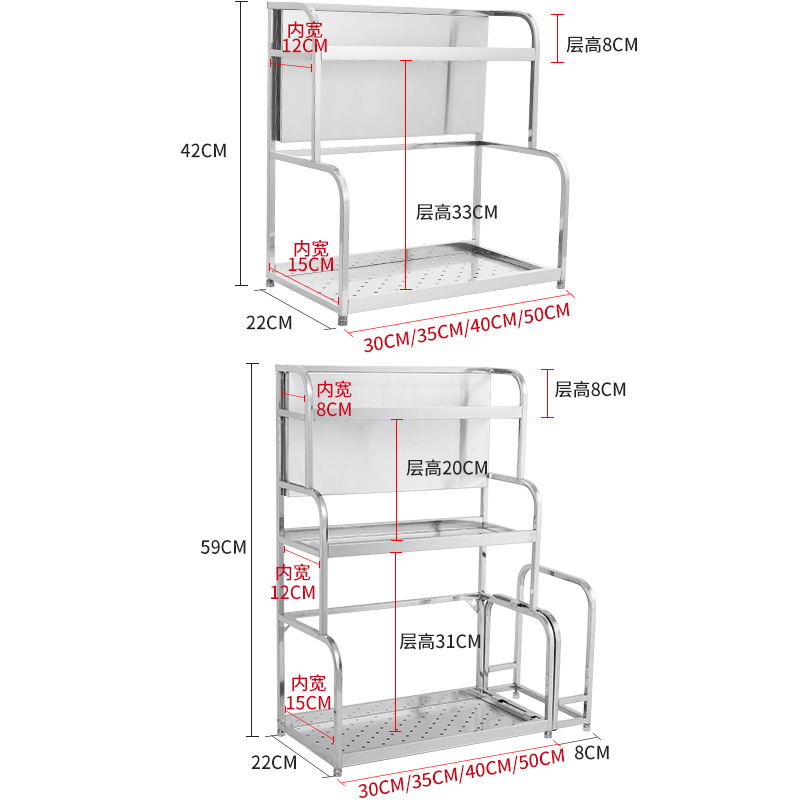 Double layer 50CM long 4 hooks (without cutting board rack) Double layer total length 58CM long 4 hooks (with cutting board rack)