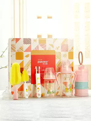 Neonatal glass bottle gift box set set baby baby bottle wide diameter with straw to prevent flatulence and fall