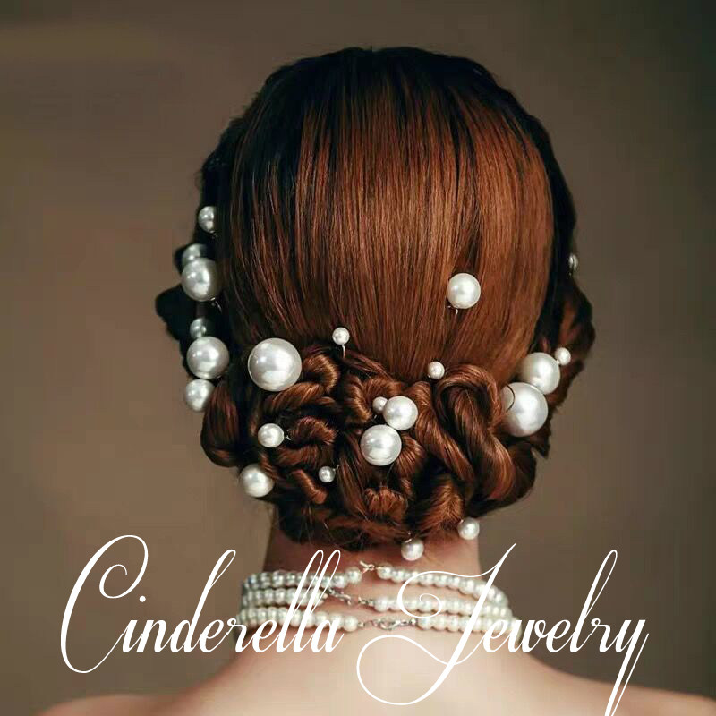 Korean bride dress dress shape pearl U-shaped black clamps hair jacket hair and photography camera gallery accessories