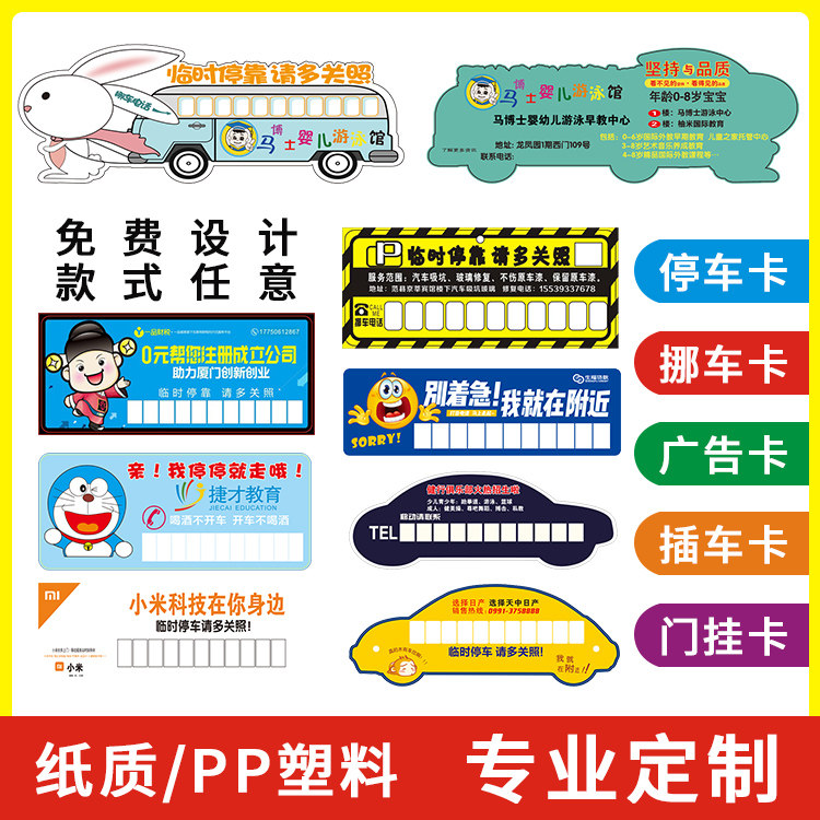 Temporary parking card custom pp plastic PVC paper car card parking card loan advertisement custom moving number