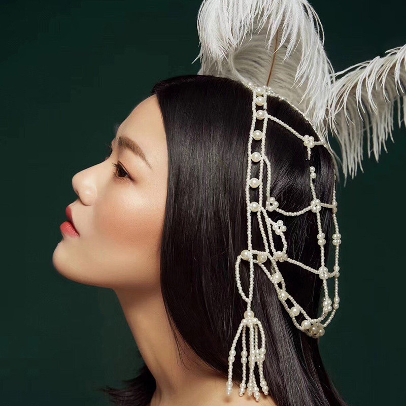 Son Bridal Pearls Headwear FLOW Suretro Europe and America Hair Accessories Pure Hand Sewn Pearl Han Style Brief Fairy
