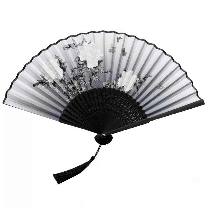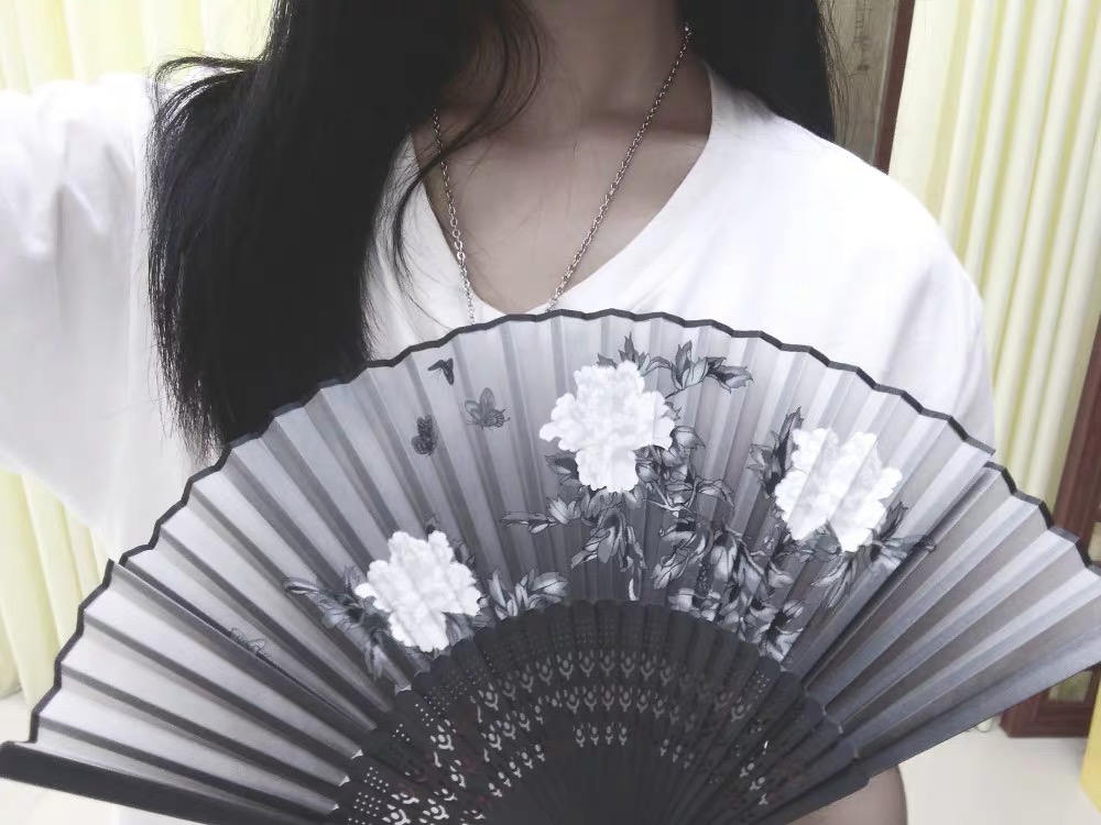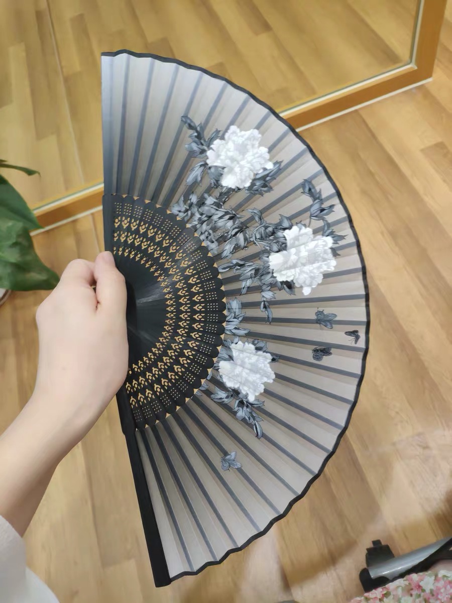 Retro black black bone black peony fan dance cheongsam catwalk stage performance fan prop fan