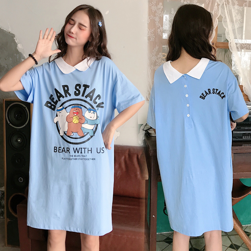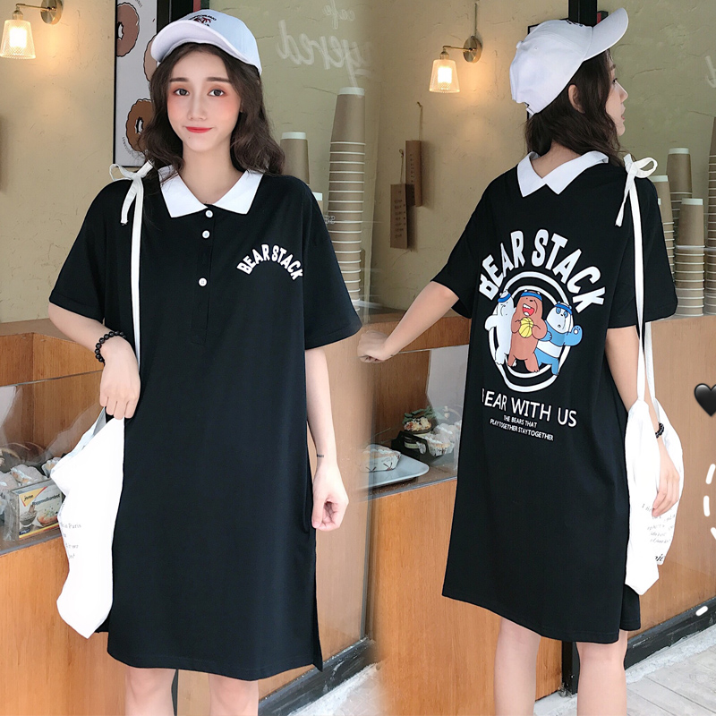 Summer loaded with large size gestation maternity dress with fattening medium long version of foreign dress pure cotton gestation 200 catty dolls collar undershirt