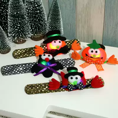 Halloween decorative toy pumpkin bat ghost clap circle children's luminous sequin bracelet with lamp hand buckle gift