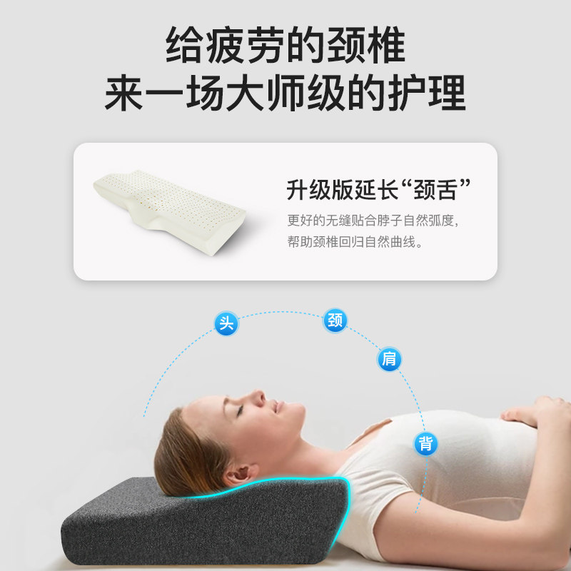 Latex neck support pillow (free dark gray cotton pillowcase) Latex neck support pillow (free light gray cotton pillowcase) Latex neck support pillow (free pink cotton pillowcase) Latex neck support pillow (free light blue ice silk pillowcase)