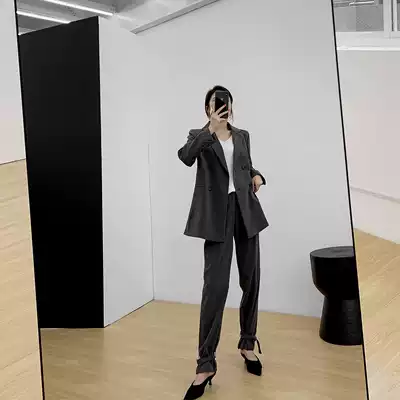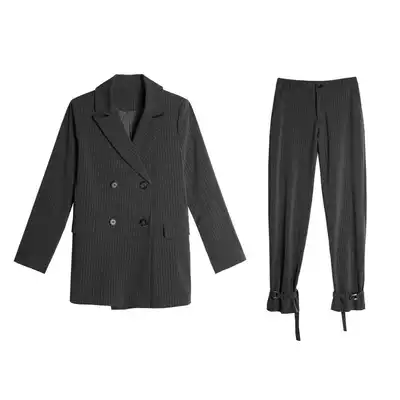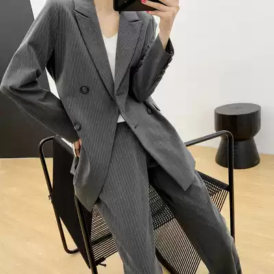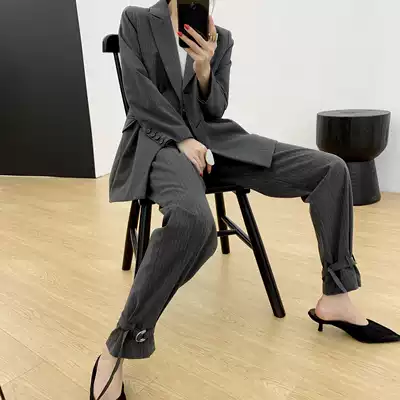 Fruit custom fashion suit women 2020 Autumn New Korean gray striped suit high waist wide leg trousers