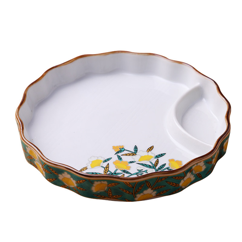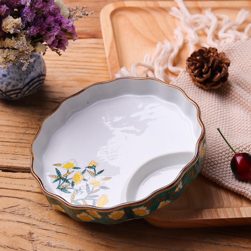 Day Style Ceramic Cutlery Hotel Creative Circular-Dish Cheese Fries Pan Retro Appliquer-Baked Goods Pan Fried tray