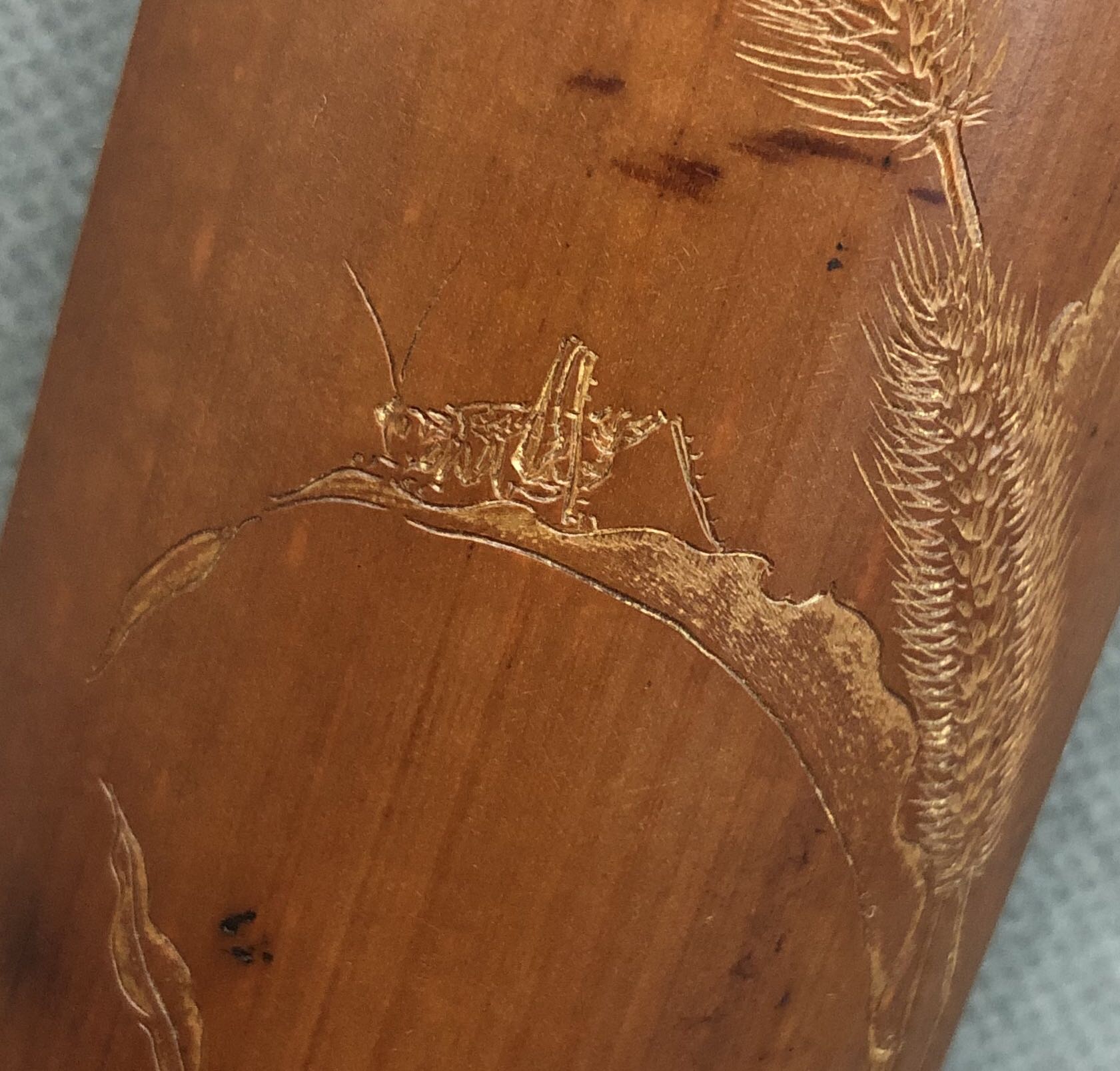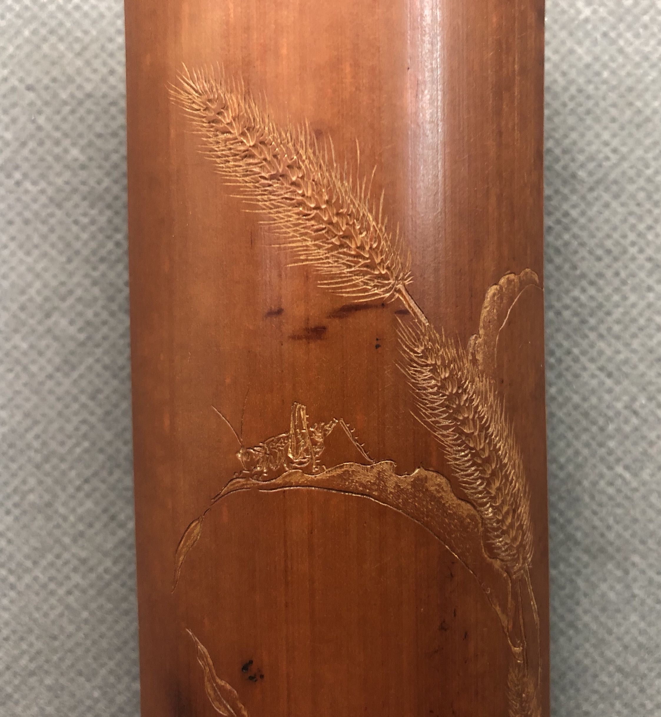 A century-old plum and bamboo dog tail katydids carved tea rules