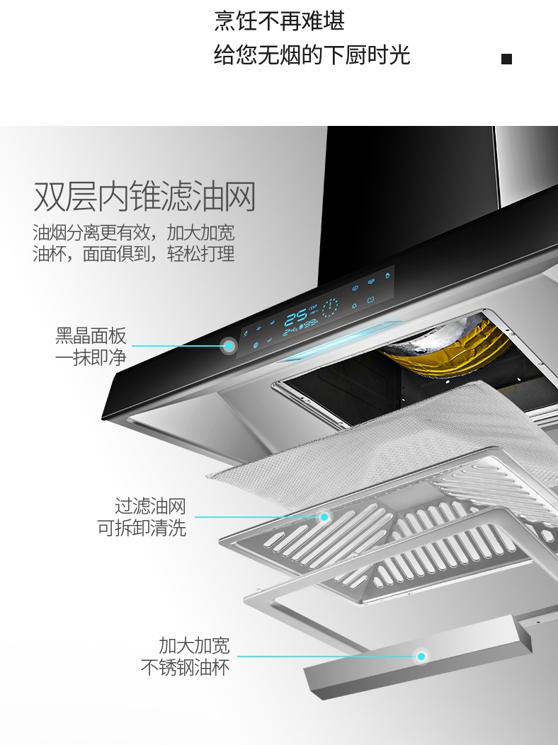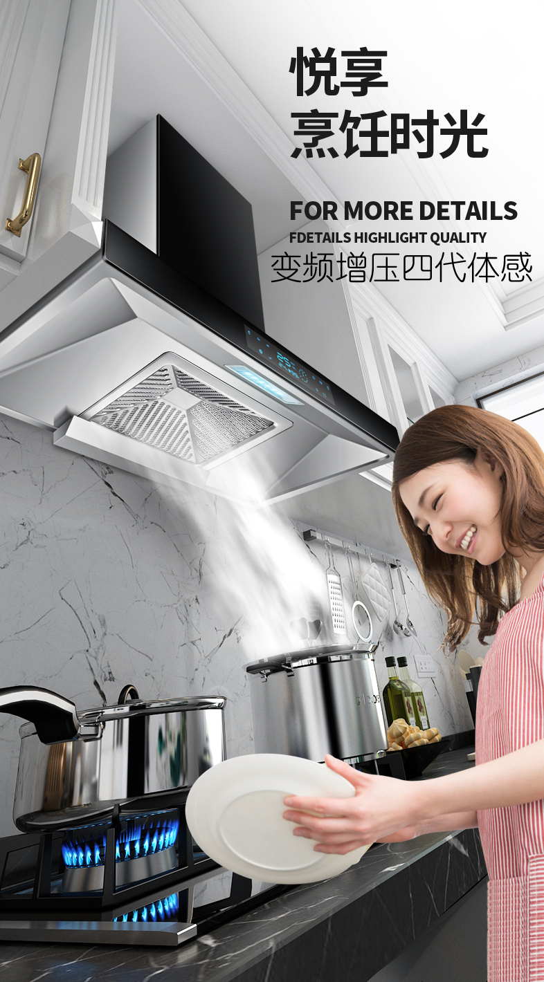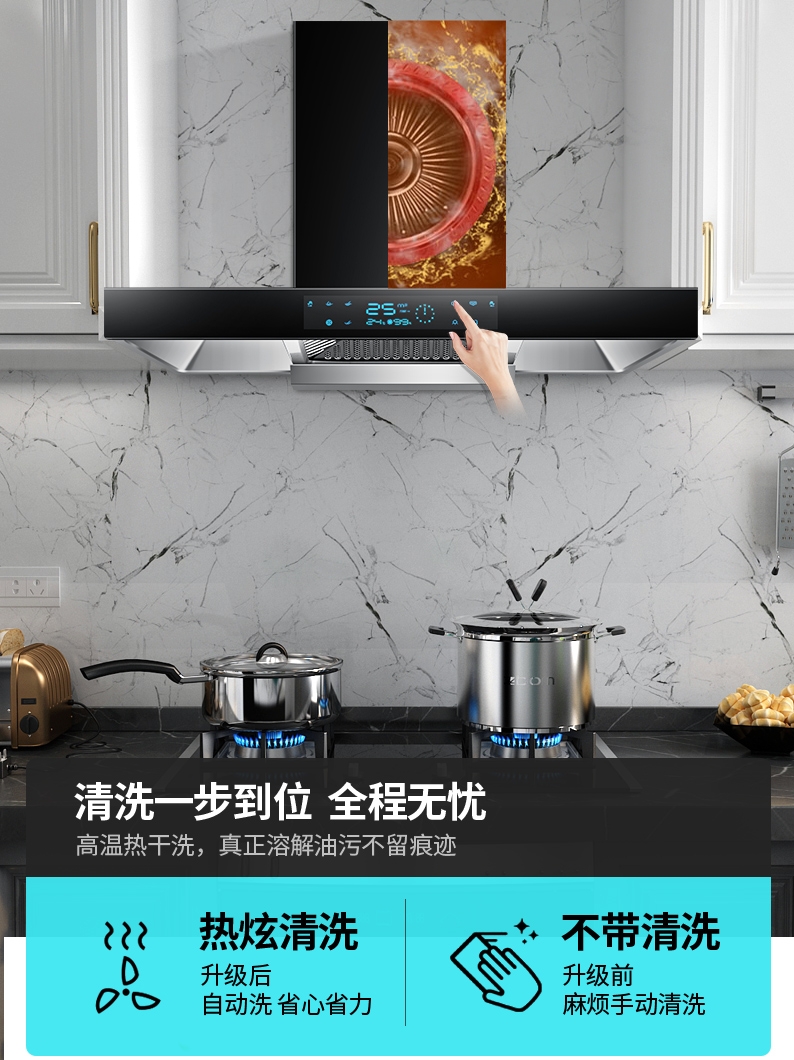 Highly equipped with (9)(0) frequency conversion cleaning + steel lid cooktop