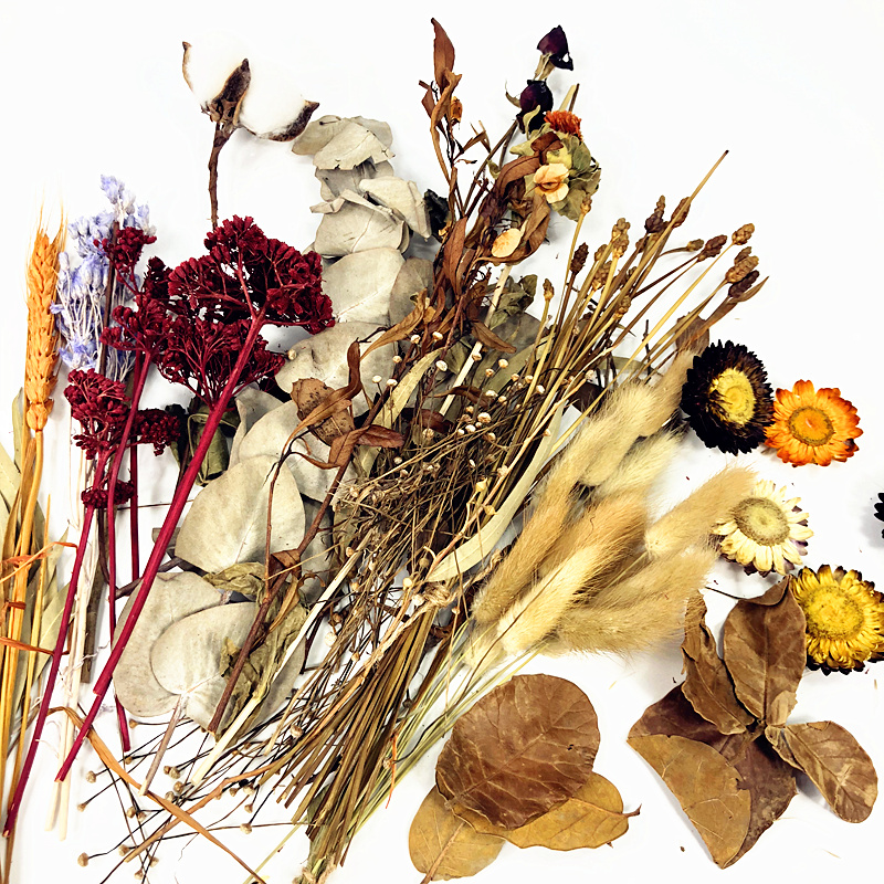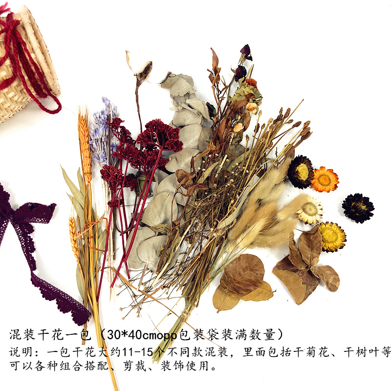 Mixed dried flowers (about 11-15 styles) white lace (2 meters long and 2cm wide) wine red lace (2 meters long and 2cm wide)