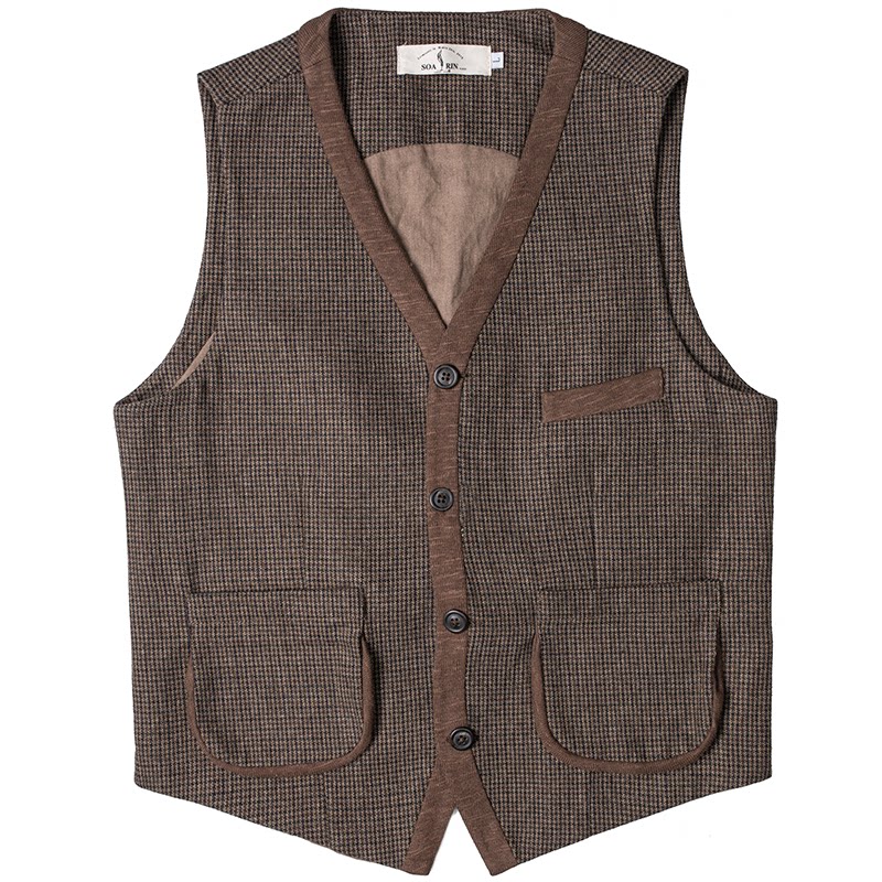 SOARIN retro Inglo Plaid suit waistcoat for men's coarse flowers Western suit vest casual Gemma clip waistcoat