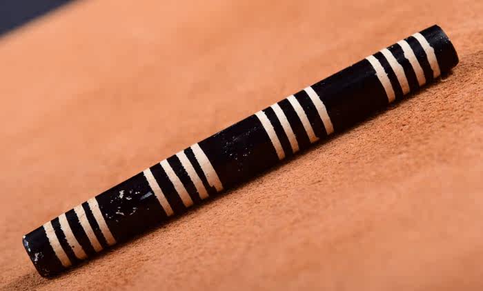 Ancient Beads R5164FE-Indus Valley Culture-Black and White Inlaid Line Beads 5 8cm4 8g