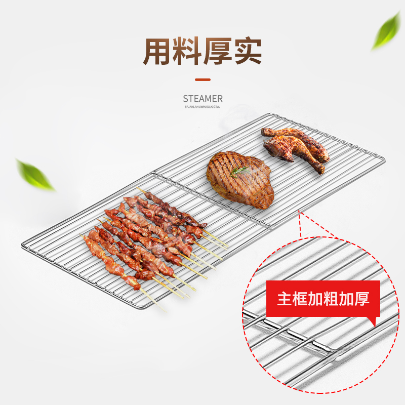 Stainless steel barbecue net barbecue rectangular leached oil net rack cake drying net drying pork net rack barbecue baking tools