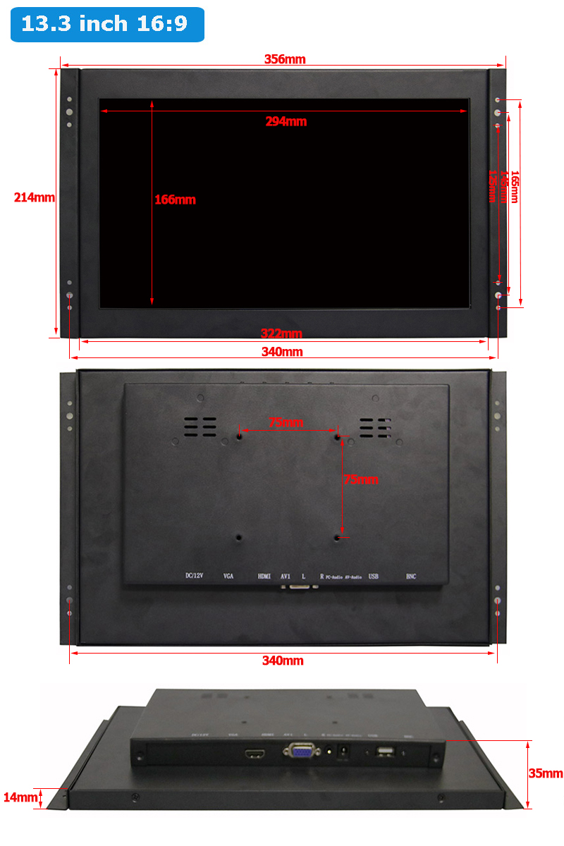 13 3 inch HD Monitor Industrial Embedded Open Frame Touch Monitor 1080P HDMI VGA USB