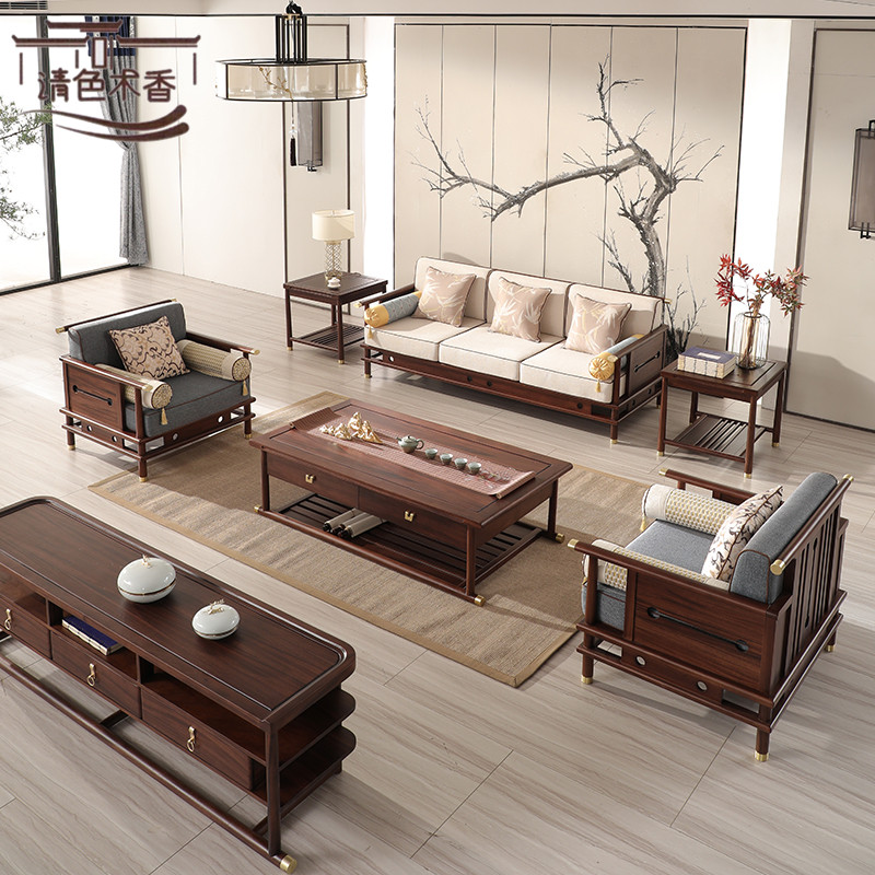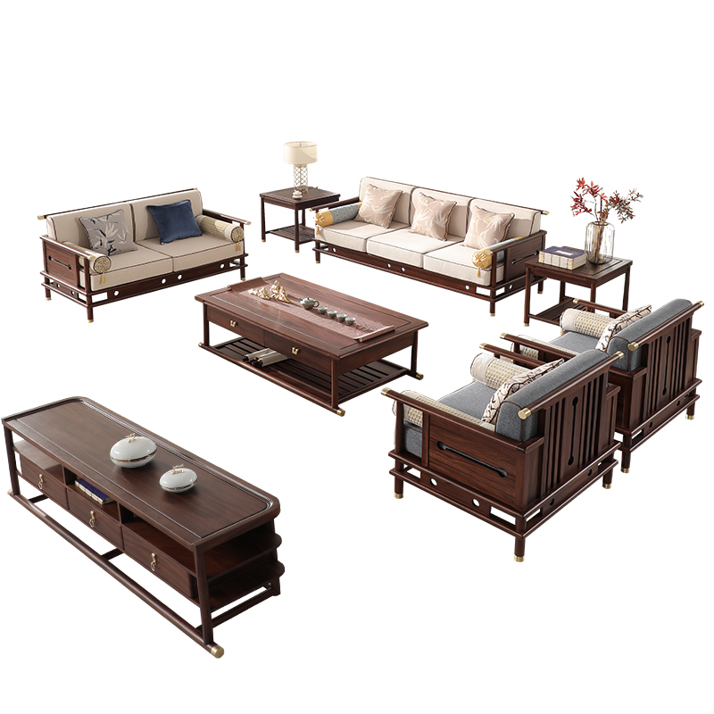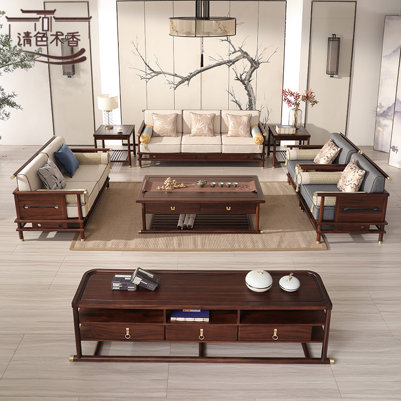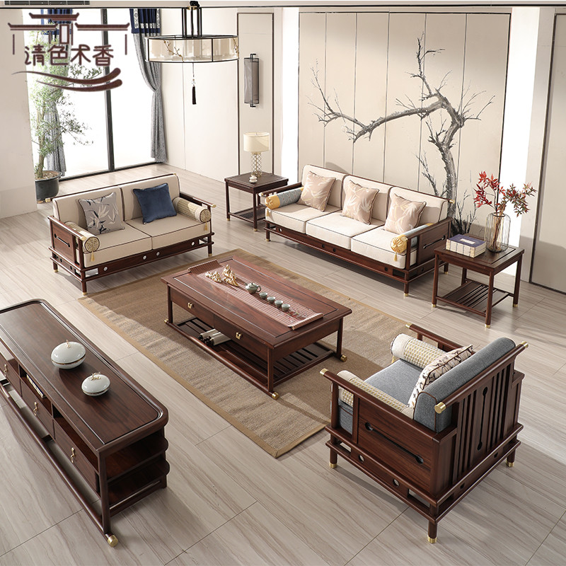 New Chinese style walnut sofa living room fabric sofa combination all solid wood Chinese style modern light luxury Zen furniture - Taobao