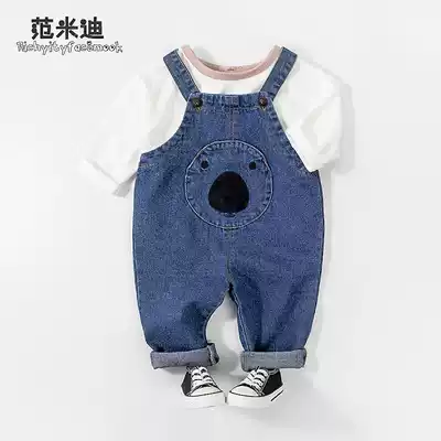 Baby hugging baby bag pants Spring and autumn children's western style denim pants Male baby autumn cartoon casual pants Korean version of the tide