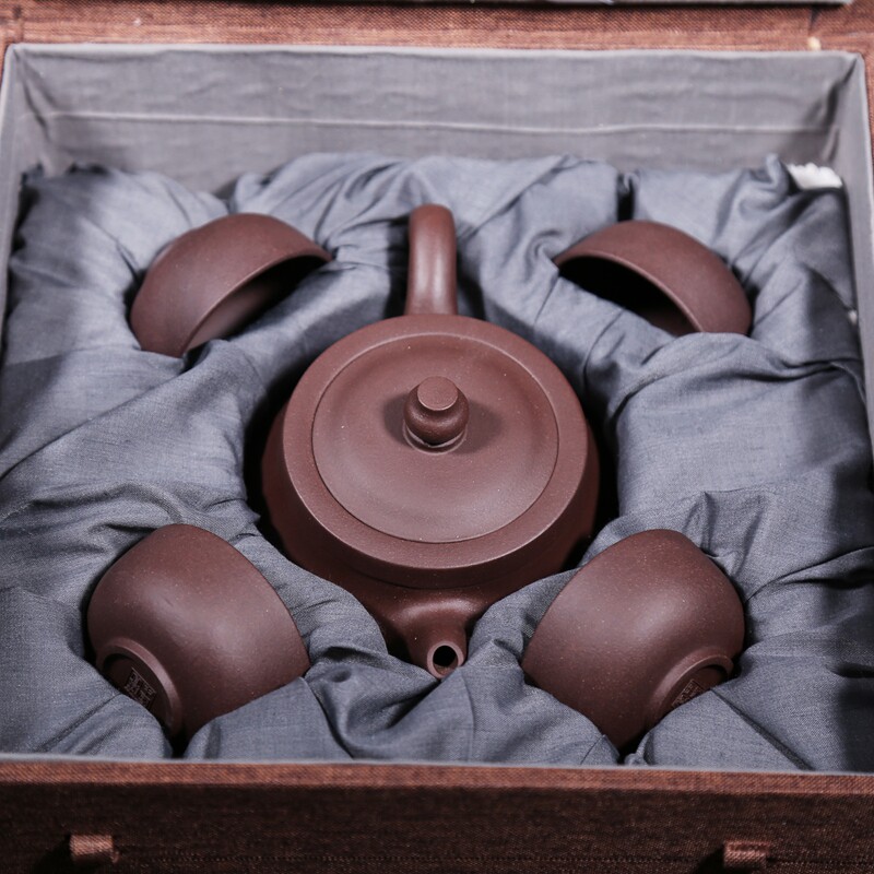 Yixing purple sand pot set Kung Fu tea set complete tea set set office step by step one pot four cup gift box