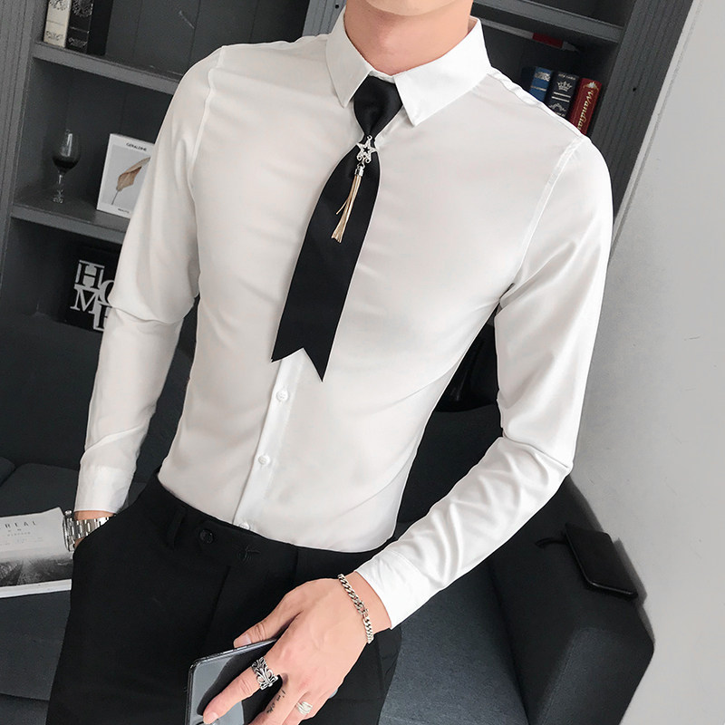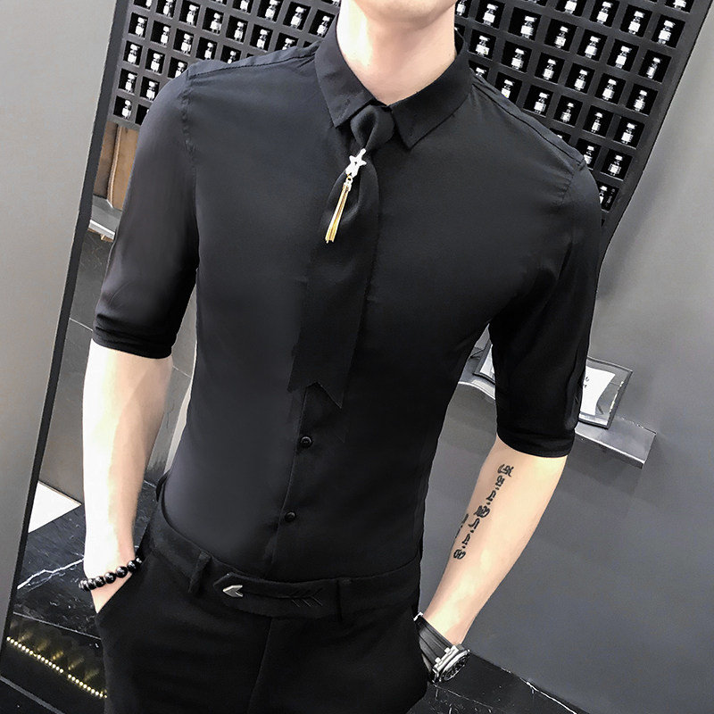 Hair stylist Shirt Men Short sleeves Korean version trendy 50% sleeves 7 Shirt Handsome Gas Tie Mid Sleeve Inch