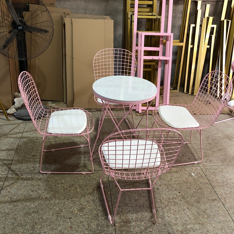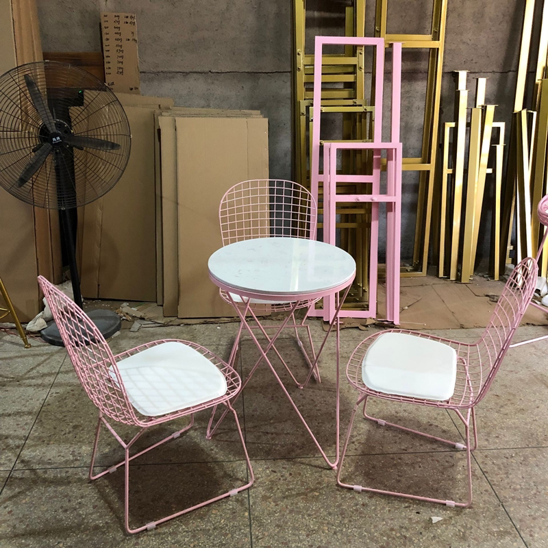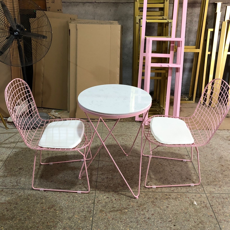 ins pink milk tea shop dessert coffee hall casual table and chairs marble small round table little fresh 1DE1-3DE9