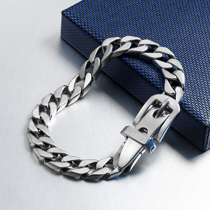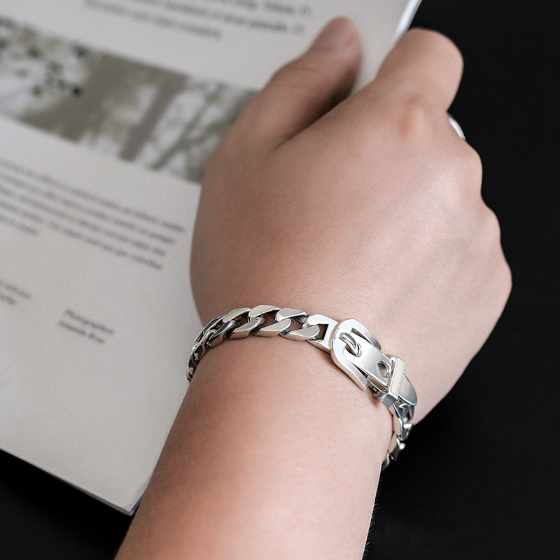 Creative belt buckle sterling silver bracelet male Korean version hip hop personality simple hip male Valentine's Day gift to her boyfriend
