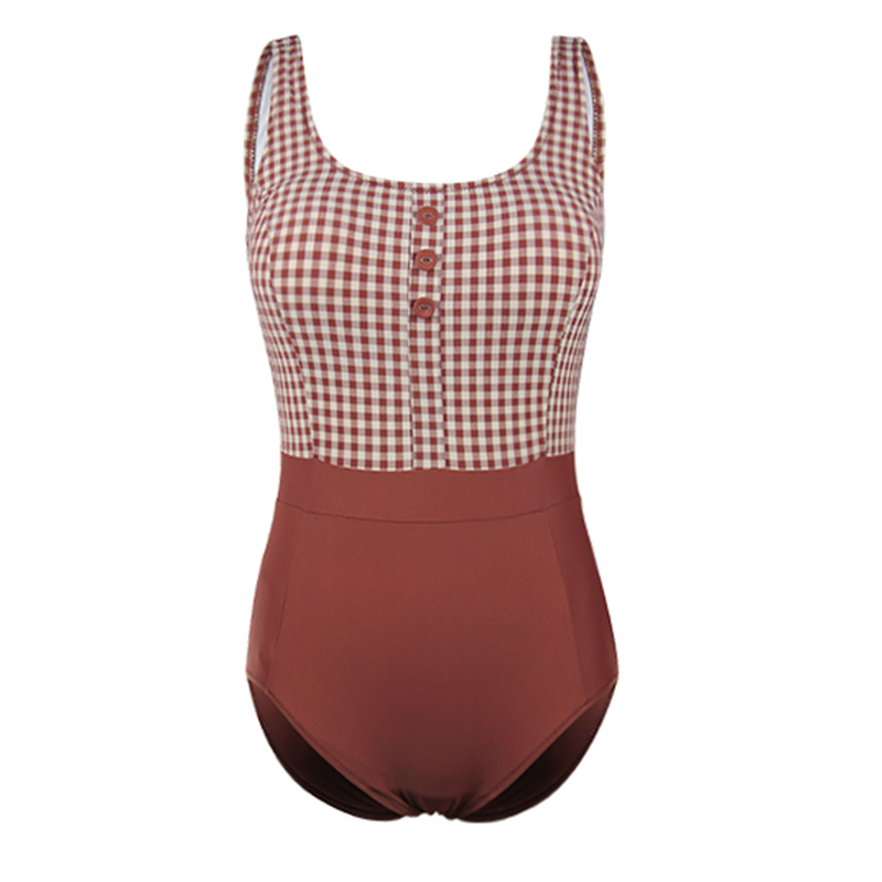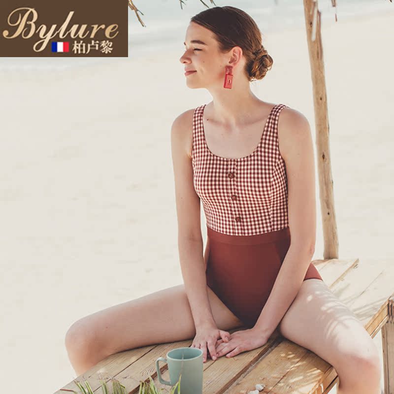 Bylure light luxury brand swimsuit women cover belly and show thin fairy fan conservative plaid ins one-piece triangle swimsuit