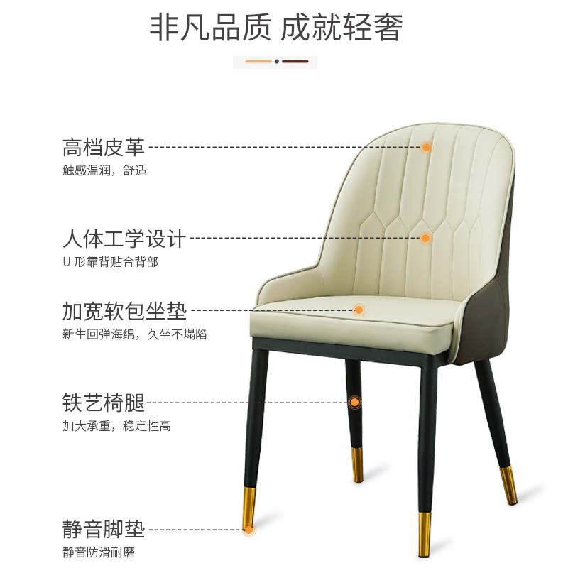 Nordic Light Lavish Dining Chair Modern Minima Home Dining Room Leaning Back Chair Hotel Soft Bag Casual Chair Talks Iron Art Chair