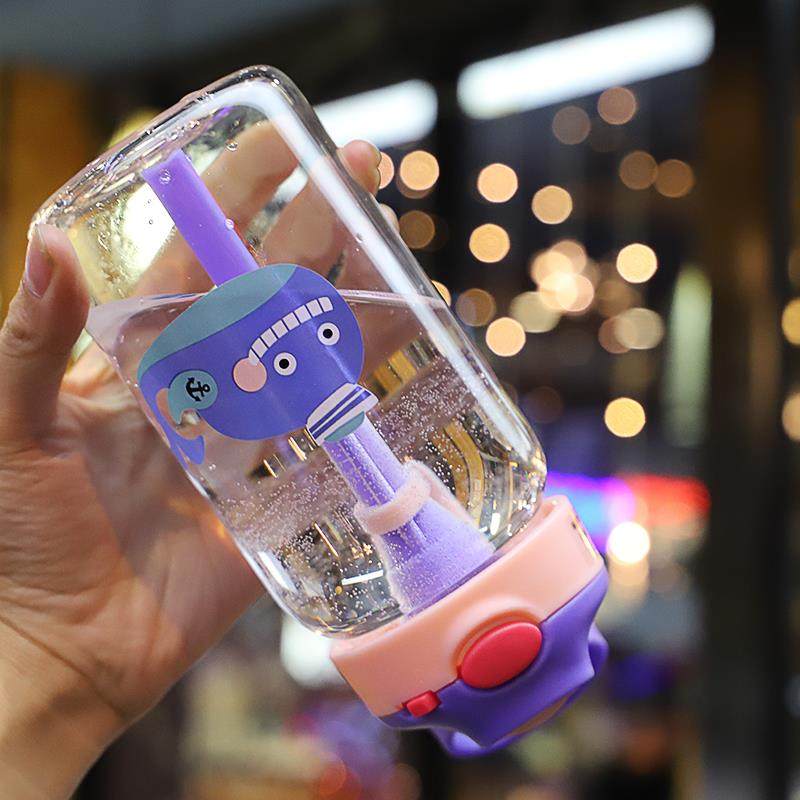 Cup cute super cute with straw water Cup adult personality creative children's strap glass transparent Japanese Korean version