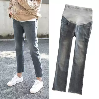 Pregnant women's jeans spring and autumn wear trendy mom straight pants jeans autumn belly pants nine-point pants trousers autumn