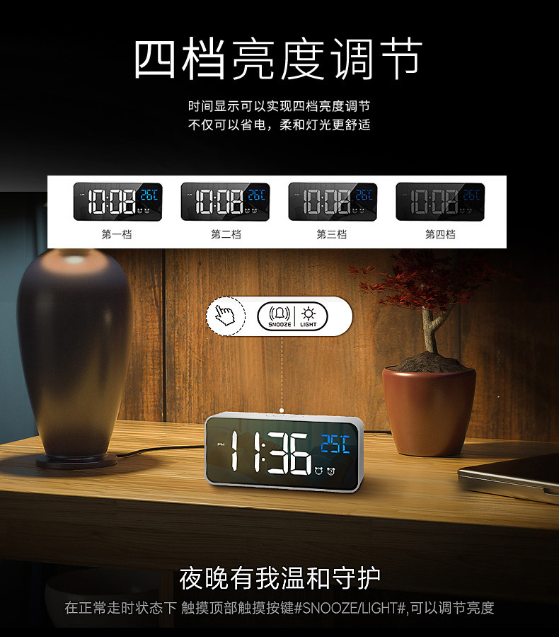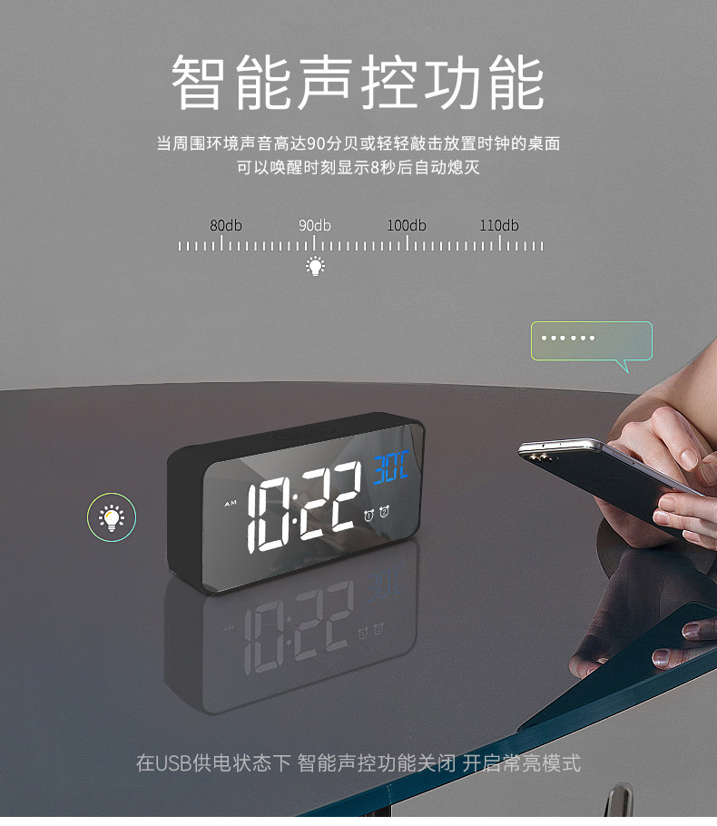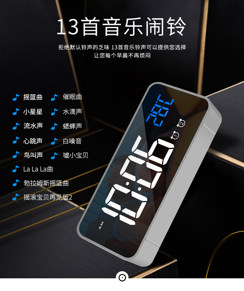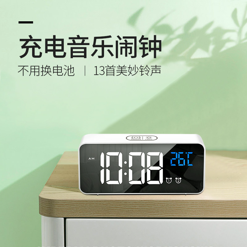 Polaris LED smart charging music alarm clock Creative mute fashion simple style bedroom student electronic watch