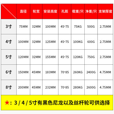 3 inch light directional 3 inch light universal 3 inch light universal with brake 4 inch light directional 4 inch light universal 4 inch light universal with brake 5 inch light directional 5 inch light universal