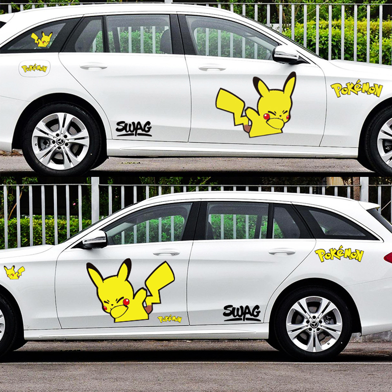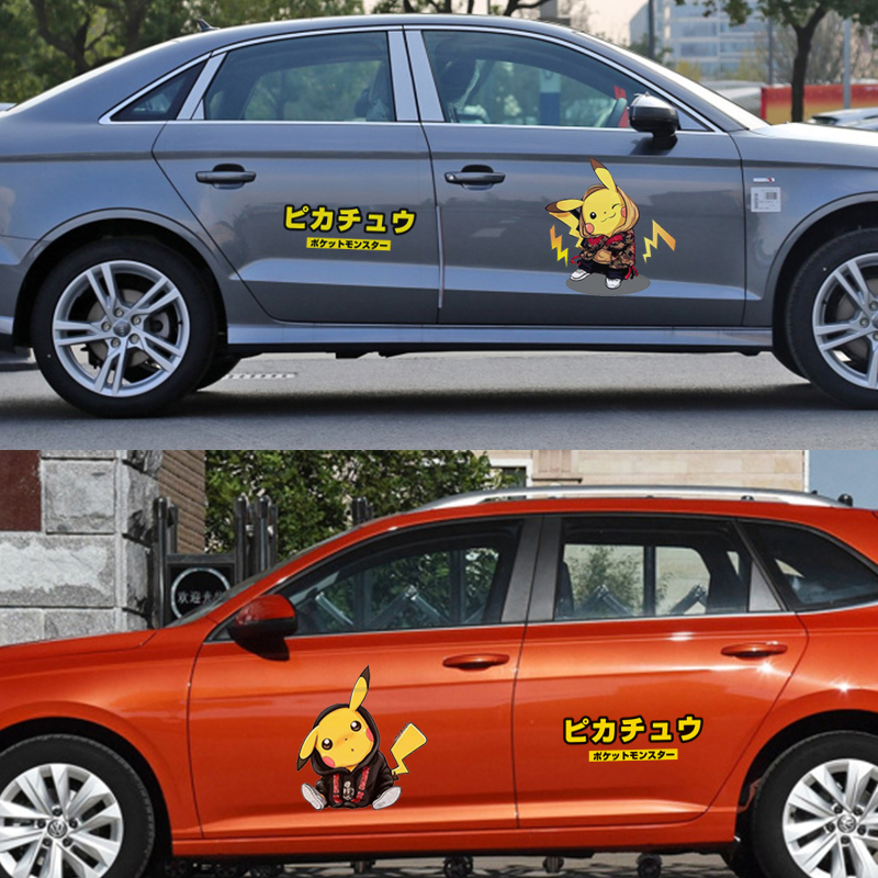 Cartoon Leather Kachu Car Sticker Creative Car Stickers Lightning car door body Decorative Sticker shelter Scratched Machine Cover Car Sticker
