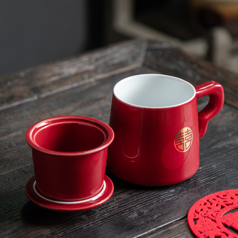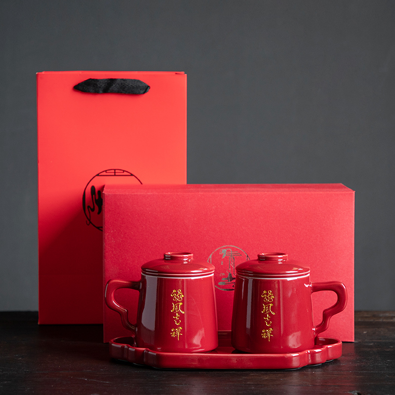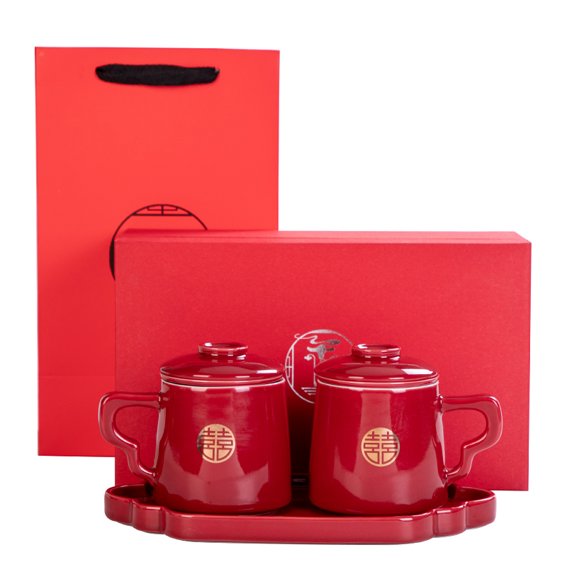 Double Hi to Cup Gift Box Dragon Fengxiang to Cup Gift Box pure single cup double - Single cup Longfeng auspicious single cup hands with Zhao old - single cup lace ceramic tray