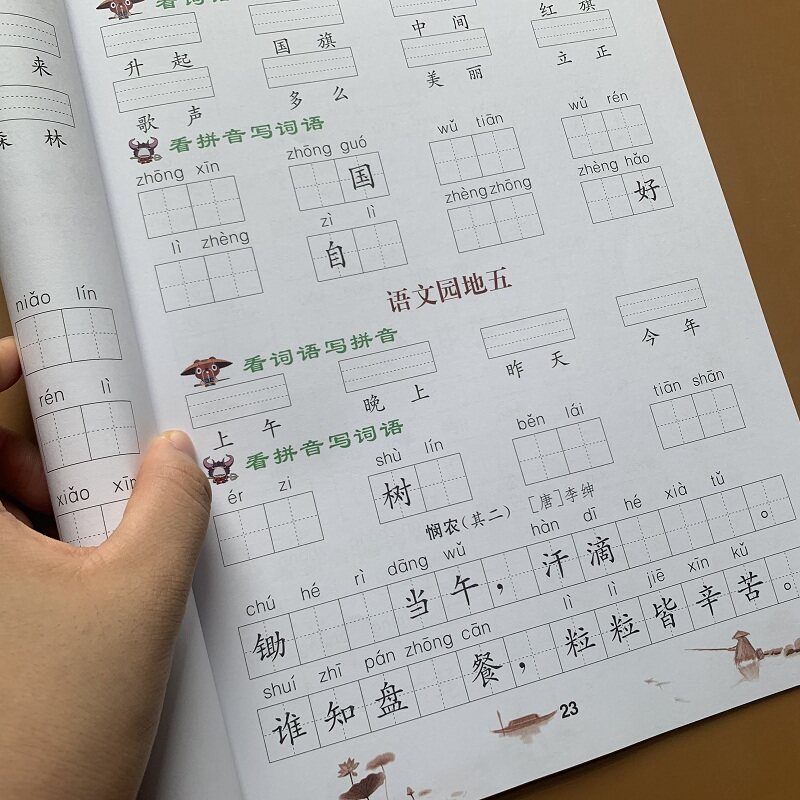 New version 2 Primary school 1st grade textbooks See pinyin Write words Students in Chinese language Languages Synchronized Elementary Students 1 Grade Chinese Characters Words Plus Pinyin Language Classroom Homework texts Wenmer Write content Fill out special training