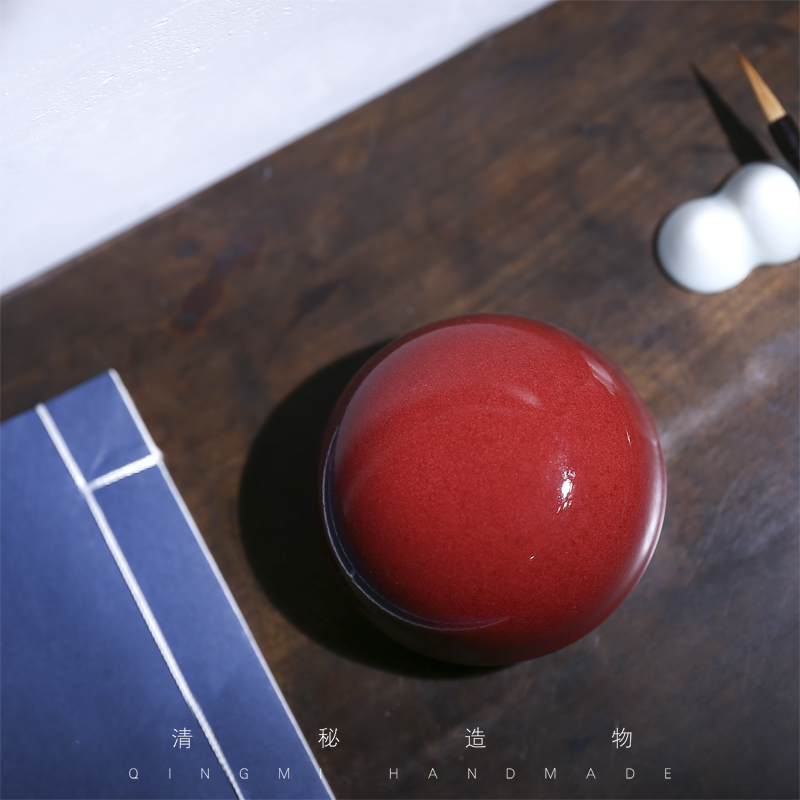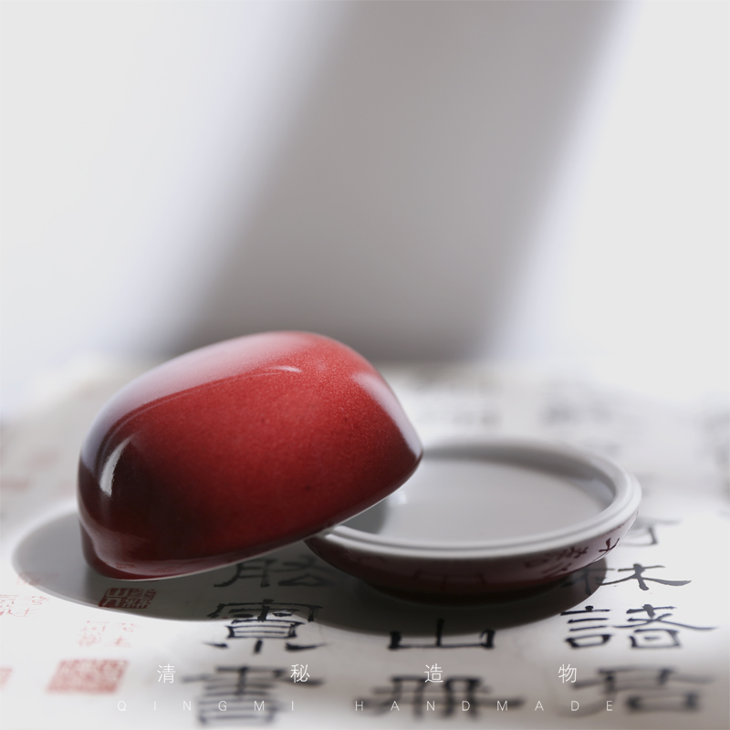 Qing secret creation antique Jihong ceramic printing mud box large printing mud cylinder boutique study professional seal carving printing mud box